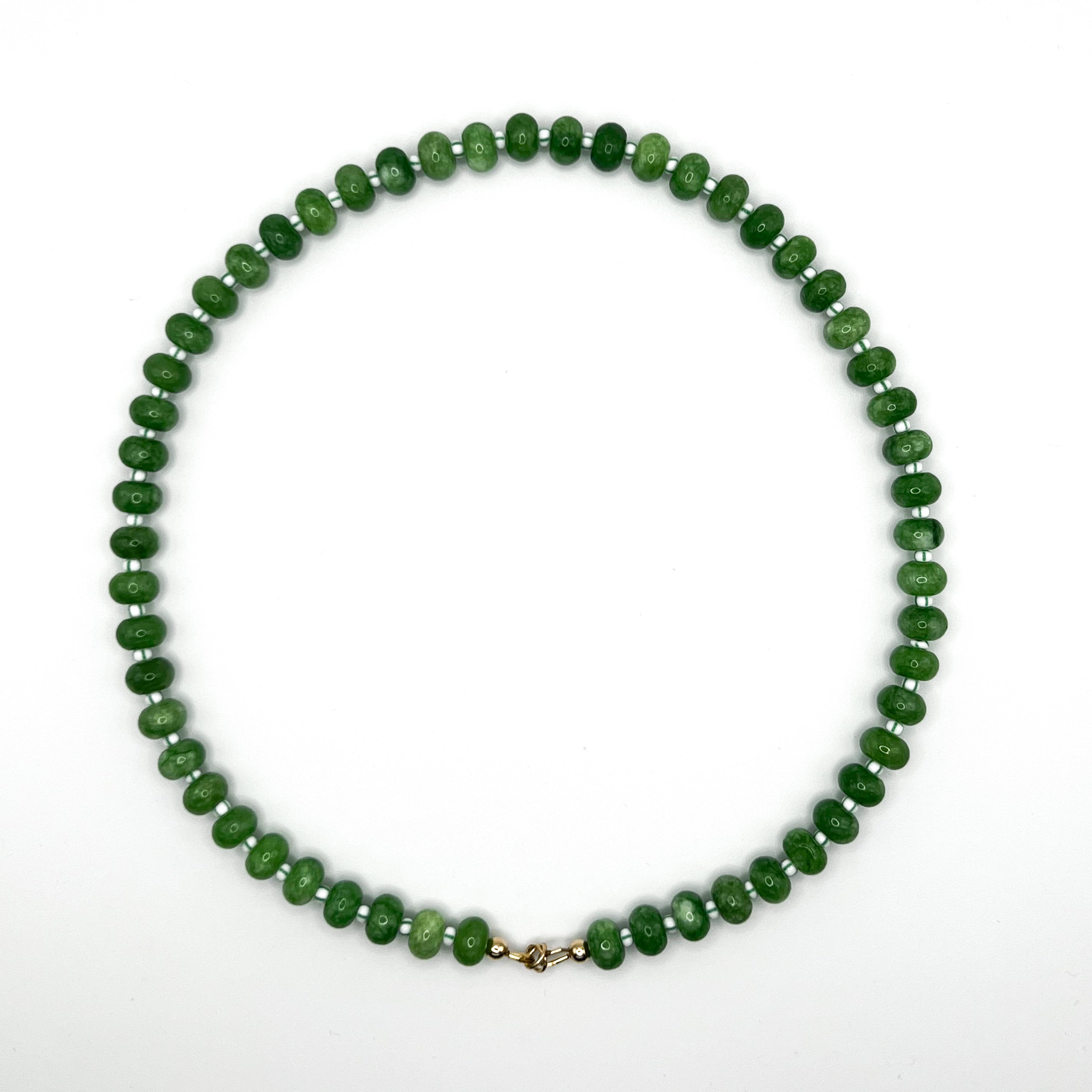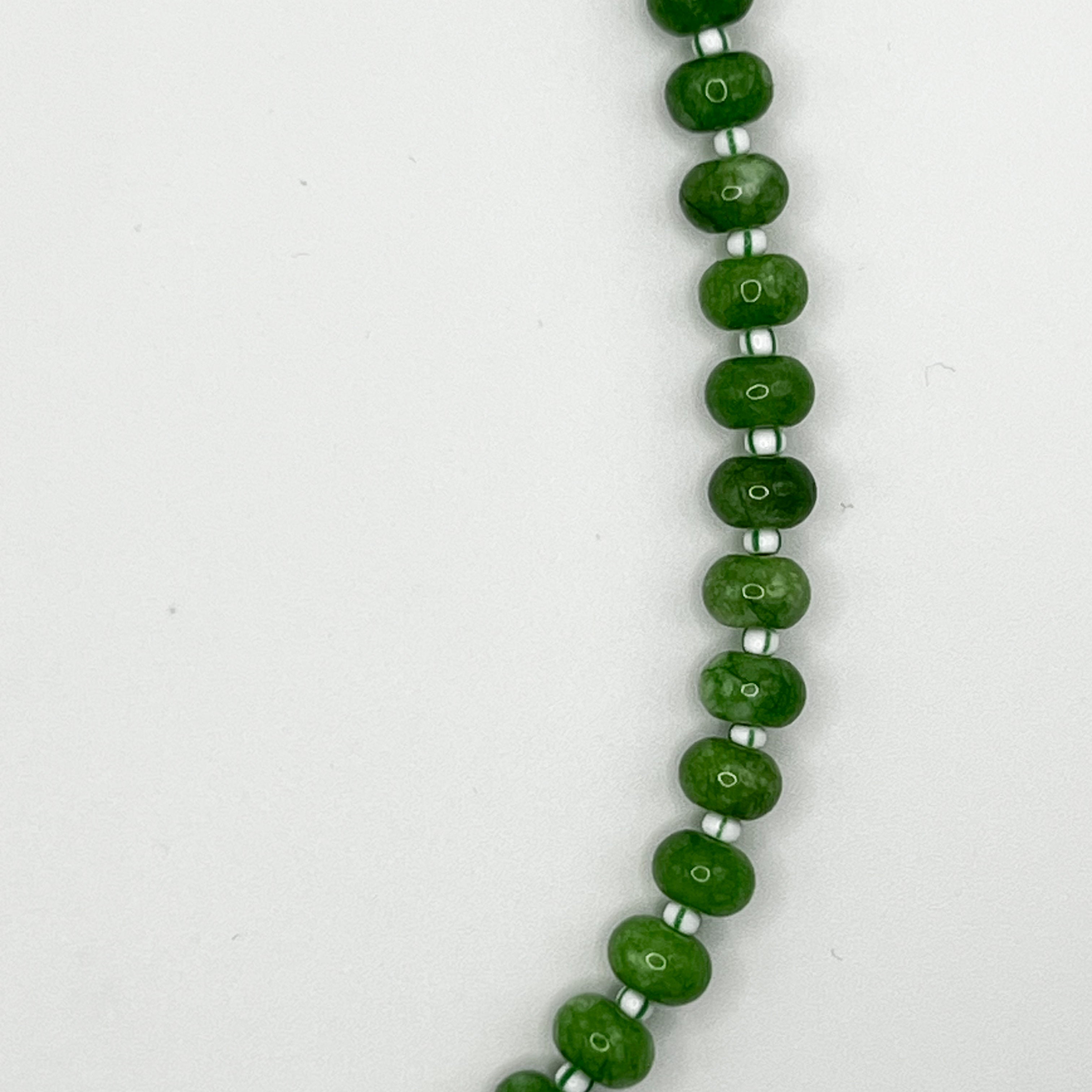 Green jade with white and green stripped seed beads